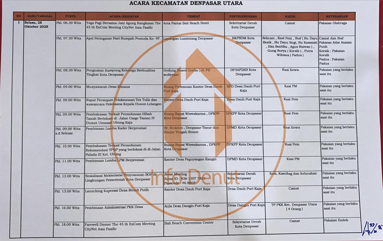Agenda Kecamatan Denpasar Utara, Selasa 28 Oktober 2025